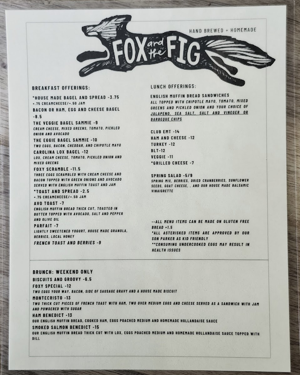 Welcome to Fox and the Fig, a delightful cafe nestled in the scenic mountain town of Spruce Pine, North Carolina. Here, the menu shines with an array of enticing options that cater to both breakfast enthusiasts and lunch lovers.